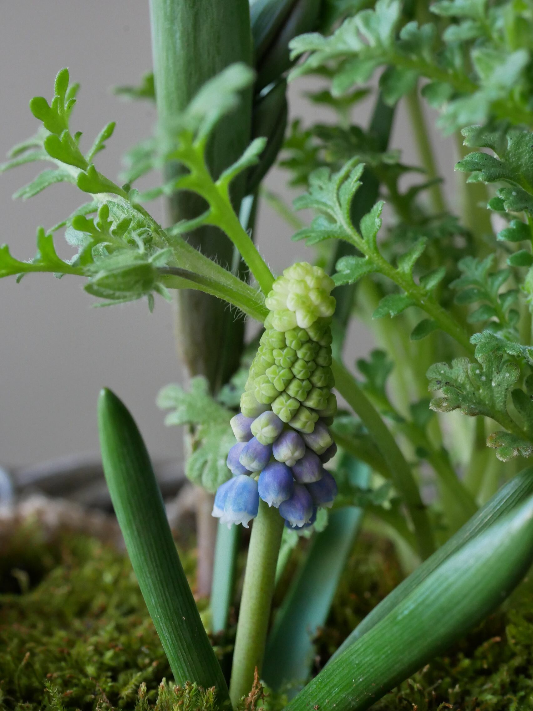 青い球根たちが春萌を感じさせて