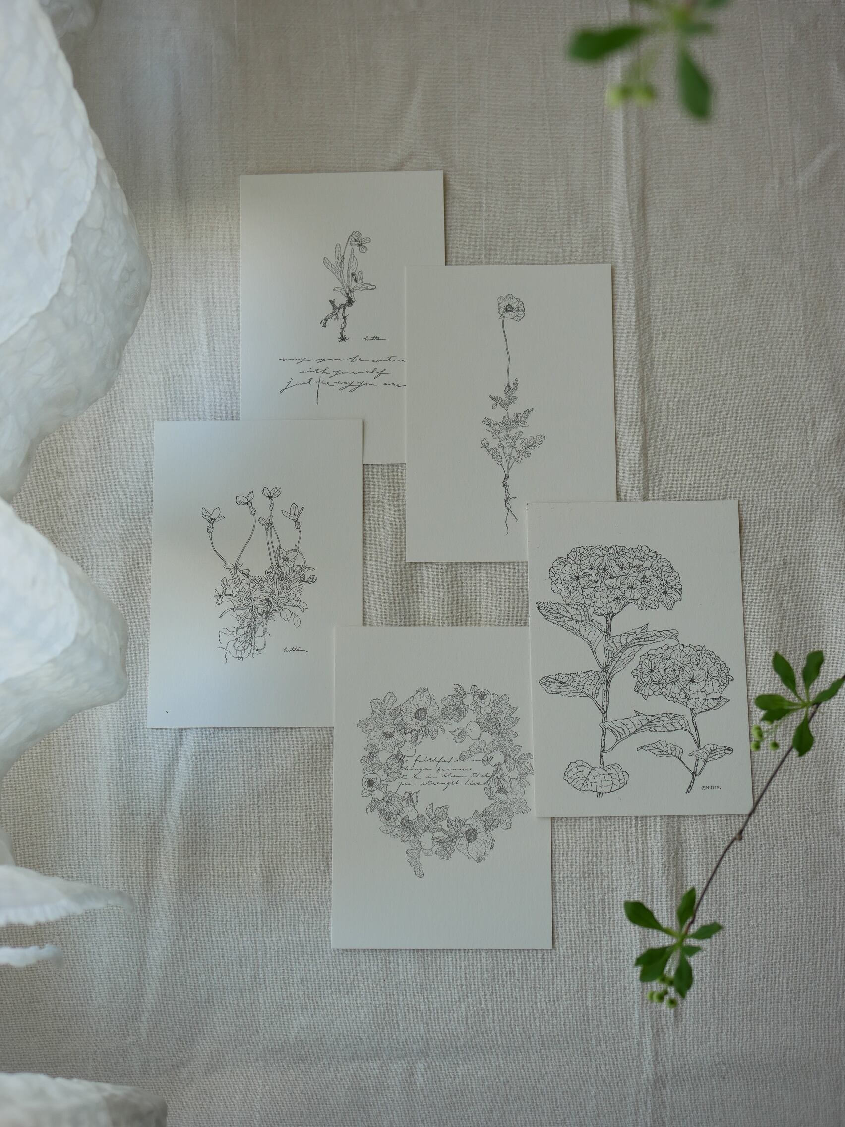 植物版画カード5枚set by HUTTE.