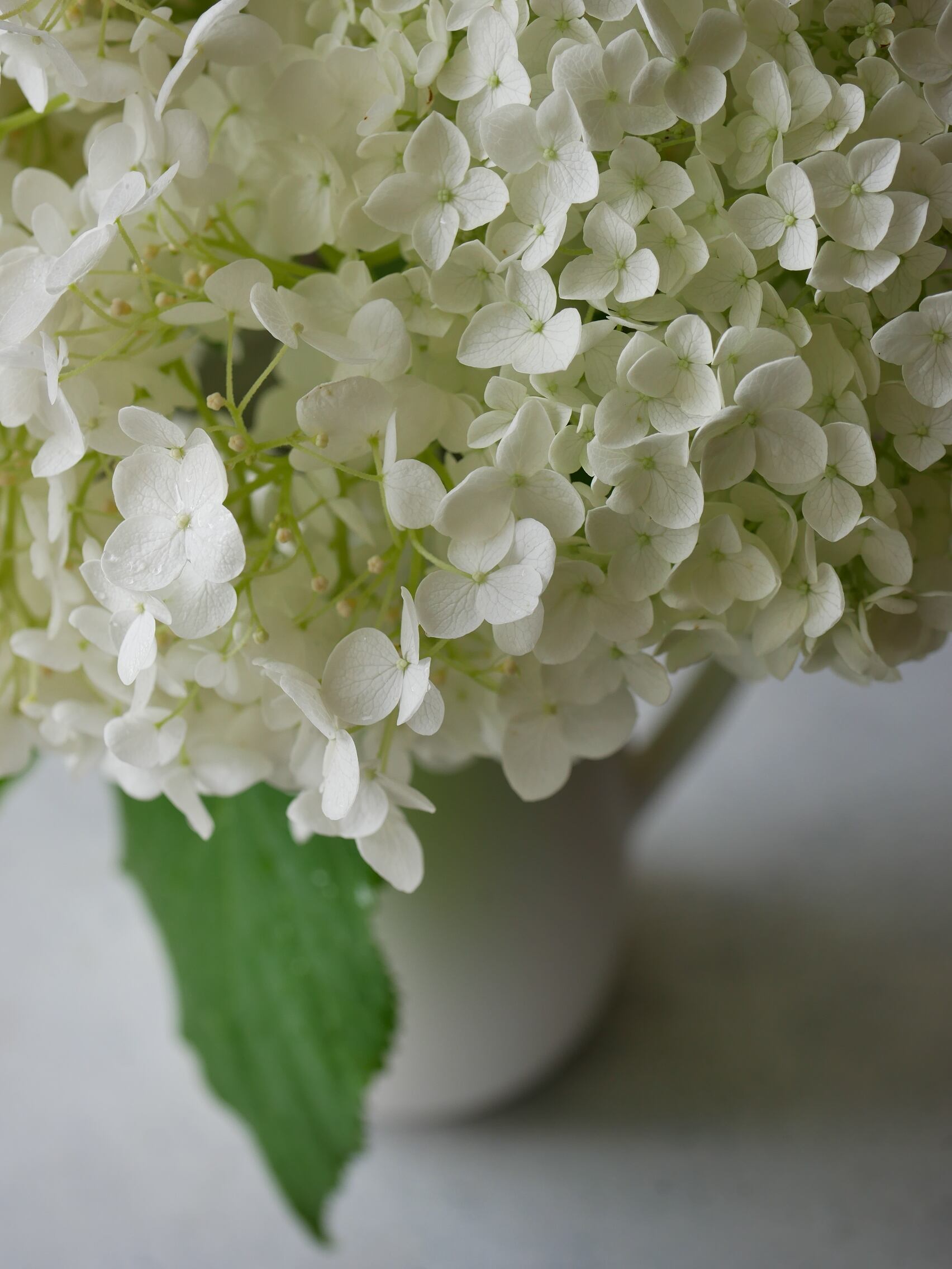 真っ白なアナベルと溶け合うようなミルク色の