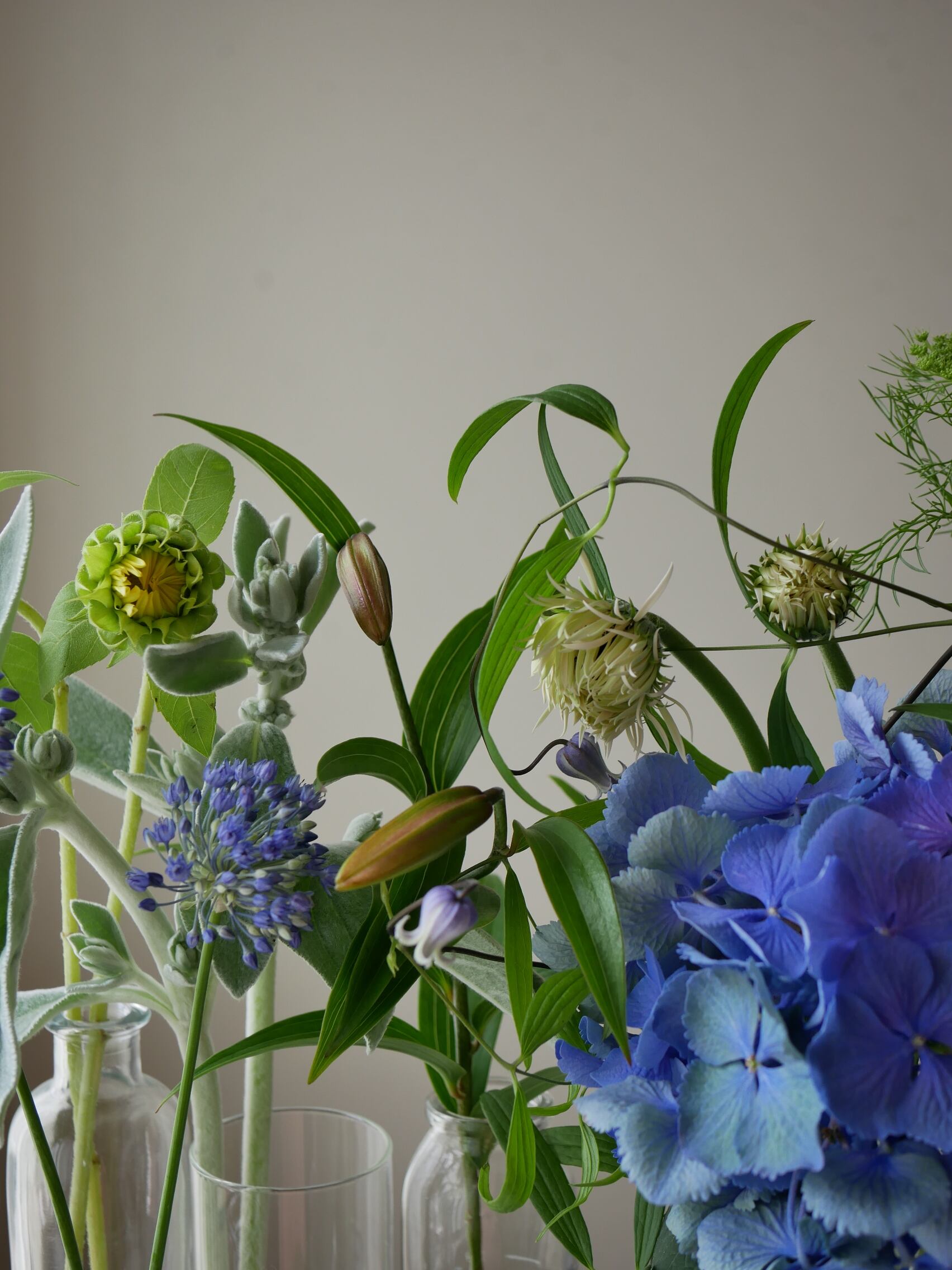 雨模様に似合う青い紫陽花と