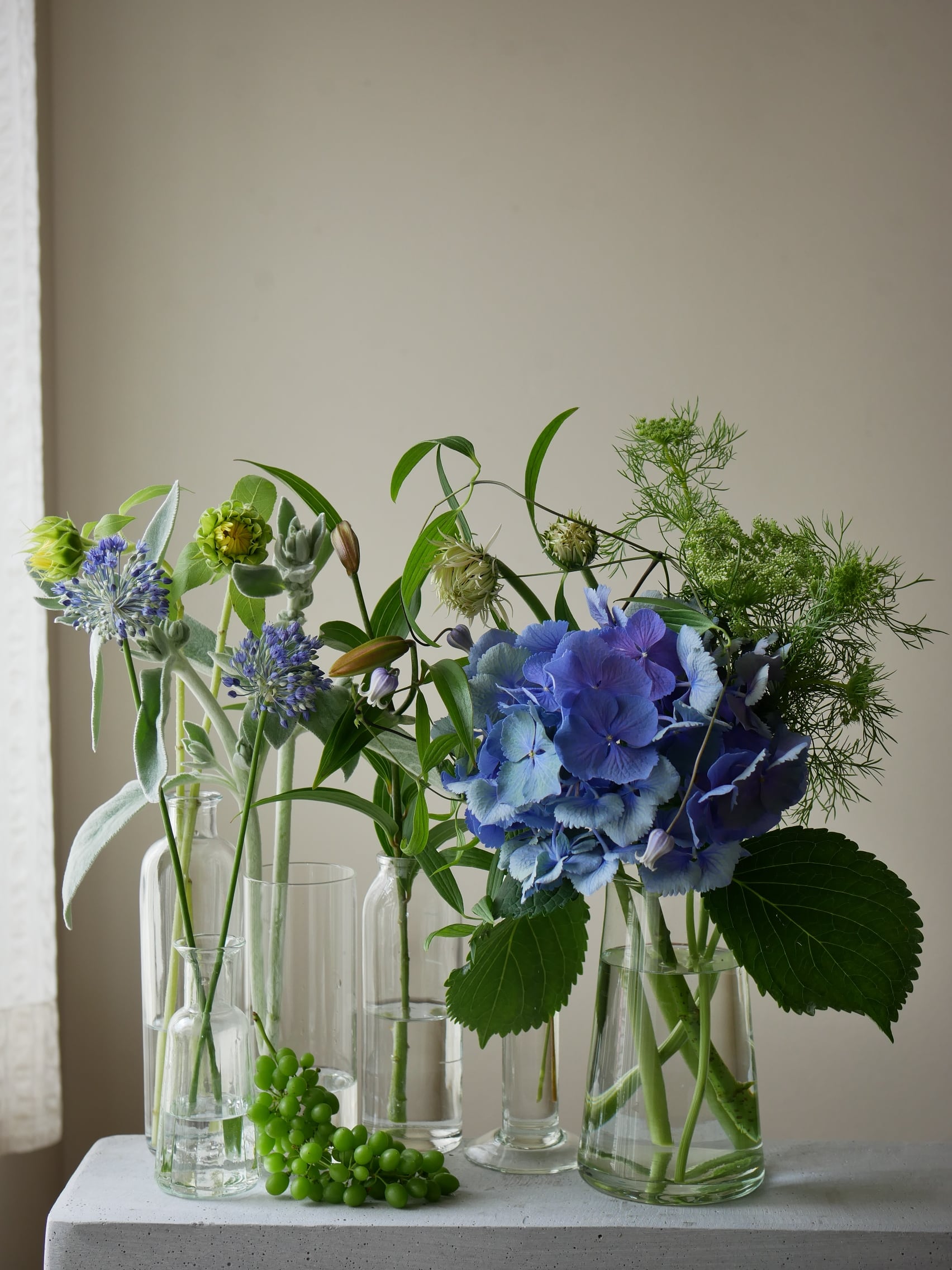 瑞々しい青ぶどうを添えました。